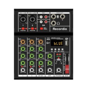 [Wsikafxn] A4 プロフェッショナル ポータブル デジタル DJ コンソール USB ミキサー ボーダー付き ライブ歌唱 4 チャンネル ブラック 1 個