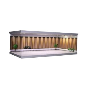 1/18スケールモデルカーディスプレイケース、LEDライト付き、配送コンテナスタイルガレージジオラマショーケース – モダンなミラー反射インテリア、グリッドフロアショールームデザイン、ダイキャストVehi用積み重ね可能なショーケース