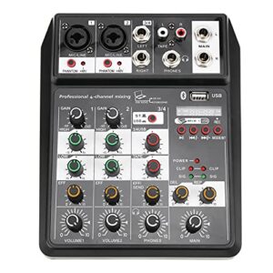 オーディオミキサー、USBオーディオインターフェースを備えた4チャンネルサウンドカードミキサー、楽器、マイクと互換性のある録音歌唱サウンドミキサー