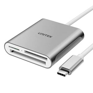 Unitek USB C マルチカードリーダー 3スロット搭載 SD・TF/microSD・コンパクトフラッシュ/CFカードリーダー USB Cデバイス用 3 枚のカードを同時に読み取る USB3.0 メモリカード アルミ合金 3in1外付けカードリーダー 高耐久 高速 データ読取 データ移行 コンパクト グレー