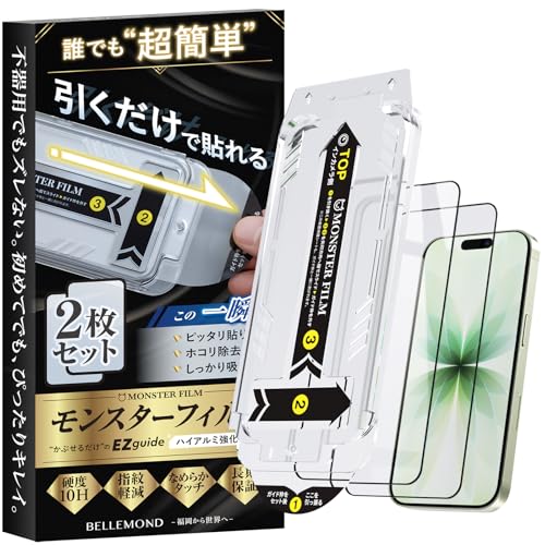 モンスターフィルムのiPhone 17/16 Pro用クリアガラスフィルムは、2枚セットでガイド枠付き。黒縁ありの全面保護タイプで、貼りやすさも特徴です。