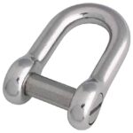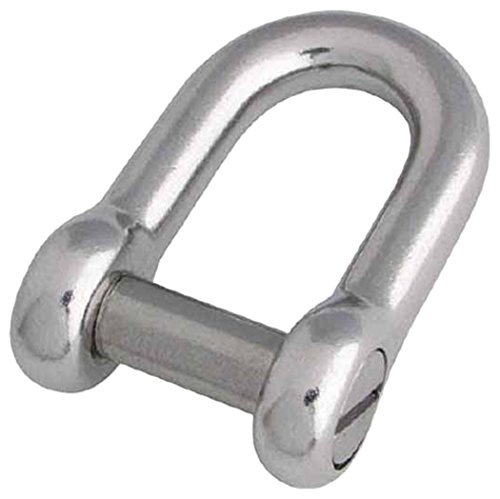 水本ステンレス製ネジ止め沈みシャックル。サイズは長さ32mm、内幅16mm。耐食性が高く、船舶やアウトドア用途に最適。強度と安全性を兼ね備えた設計です。