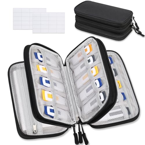 Lacdo USBフラッシュドライブケースは、サンディスクやサムソンのフラッシュドライブ、SDカード、ケーブルを整理するためのポータブルストレージバッグです。大容量でラベル付きのブラックデザイン。