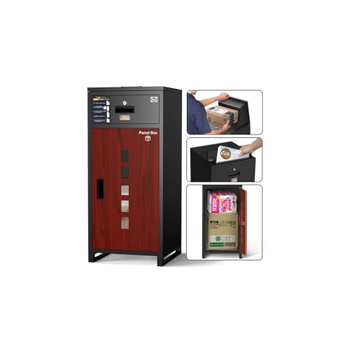 【複数投函/ポスト一体型】135L大容量の屋外用宅配ボックス。防水設計で組立不要、両開扉タイプ。盗難防止機能搭載、一戸建て用に最適。ブラックレッド木目仕上げでスタイリッシュ。