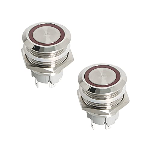 Ohamtes ラッチングプッシュボタンスイッチは、12Vおよび24V対応の防水ステンレス鋼製スイッチです。3/4インチの取り付け穴に適し、赤LED付きのSPSTスイッチで、電気機器に最適。2個入り。