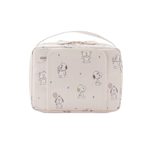 ジェラートピケのキッズアイテム、PEANUTS PUPPIES総柄おむつポーチ(トイボックス柄)。スヌーピーデザインで可愛らしさ満点。素材は柔らかく、使いやすいサイズです。色はPI-ピンクのFreeサイズ。