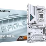 GIGABYTE B850 EAGLE ICEは、AMD Ryzen 9000シリーズに対応し、8+2+2フェーズVRM、8200MHz DDR5対応、最新のPCIe 5.0/M.2スロットを搭載。高速2.5GbE LANとUSB 3.2 Gen 2接続も魅力です。
