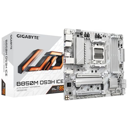 GIGABYTE B850M DS3H ICEはMicro-ATX規格のマザーボードで、Intel B850チップセットを搭載。デュアルチャネルDDR4メモリ、拡張スロット、USB3.1ポート、高音質オーディオ機能が特徴です。