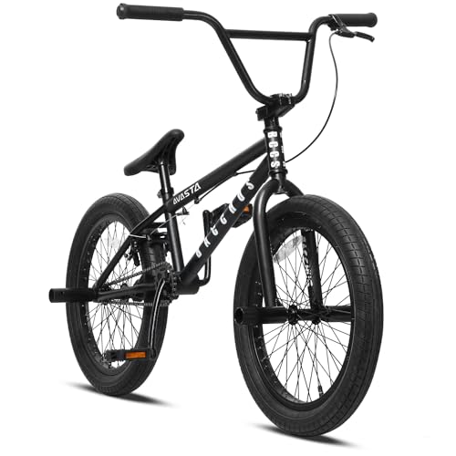 AVASTA BacchusBMXは20インチのフリースタイルBMXバイクで、高炭素鋼フレーム、後U字型リアブレーキ、スチール製ペグ付き。初心者に最適なスタント用自転車です。マットブラックのスタイリッシュなデザイン。