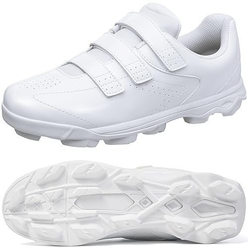 SOARHOPEの野球トレーニングシューズは、ソフトボール用の軽量スパイクで、大人向けのデザイン。高耐久ラバーソール、マジックテープ付きで幅広な作り。白色が特徴の快適な履き心地です。