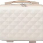 BASILOの専用キルト風ストライプスーツケース。上に乗せて使えるミニトランクやポーチ付きで便利。ホワイト13インチ対応デザイン。