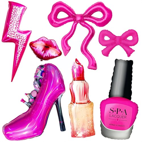 スパ誕生日パーティー用の可愛いバルーン7個セット。独身パーティーやガールズメイクアップパーティーに最適なデコレーション。リップスティックやネイルポリッシュデザインで、特別な日の演出を彩ります。