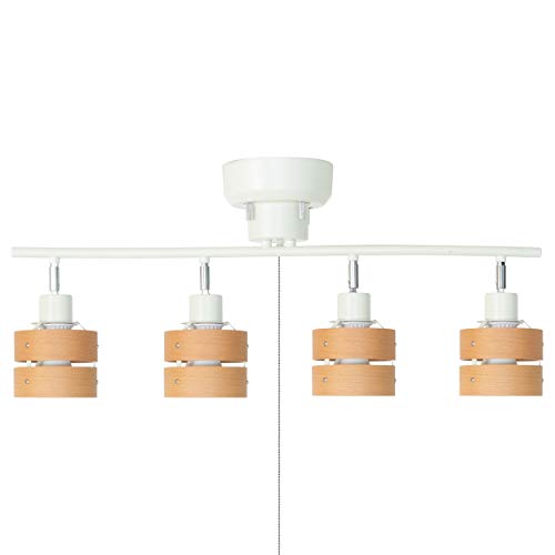 BELLEDのシーリングライトは、4灯タイプで、プルスイッチ付き。木製シェードが特徴で、おしゃれな北欧デザイン。6畳のリビングやダイニングに最適なホワイト・ライトナチュラルの色合い。