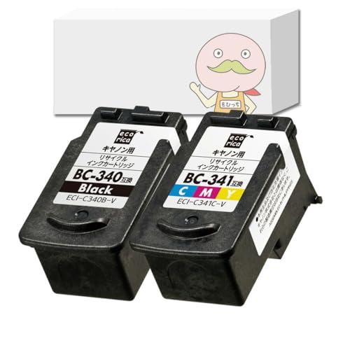 Canon用BC-340/341互換インク。リサイクルインクで4色セット。エコリカ製。PIXUS MG3530、MG3630、MG3230、MG4230、MG2130対応。
