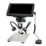 デジタル顕微鏡は7インチLCD表示、5x-1200xの倍率を調整可能。はんだ付け作業に最適で、高画質な拡大を提供します。