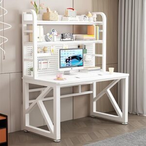 Unmjgybc 省スペース設計の書斎デスク ホワイト+白色レッグ+ペグボード付き 幅130×奥行60×高さ178 |ペグボード一体型で壁面収納を最大化。狭い部屋でも快適なワークスペースを確保し、勉強や在宅勤務をサポートする多機能PCデスク