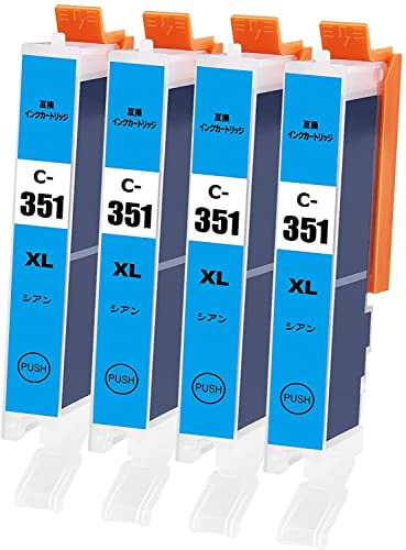 BCI-351XLC Canon 互換インクカートリッジ4本セット。シアンの増量タイプで、残量表示が可能です。高品質な印刷が可能で、コストパフォーマンスに優れています。