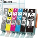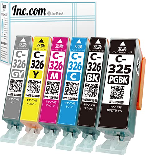 キヤノン用互換インクカートリッジInc.com製のBCI326/BCI325 6色セット。ISO14001/ISO9001認証済み工場製で、MG8230/8130/6230/6130対応。残量表示対応の最新ICチップ搭載。