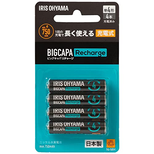 アイリスオーヤマの乾電池・充電池、単4形ニッケル水素電池4本パックです。BIG CAPA Recharge BCR-S4MH/4Bは長寿命で高性能、環境にも配慮した商品のブラックカラーが特徴です。