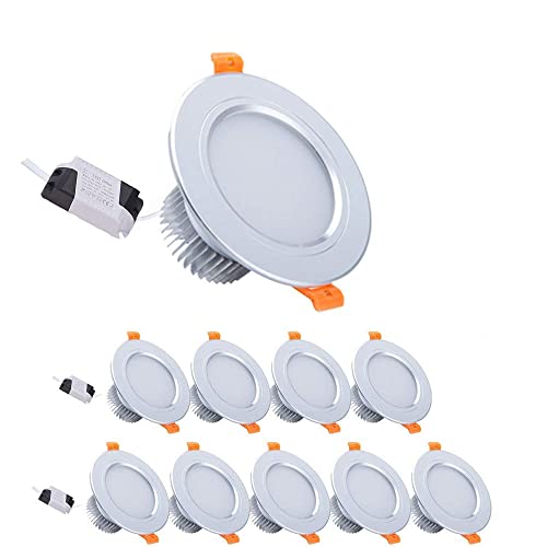 10個パックの埋め込み型シーリングライト。ホワイトベニヤ製で、アルミニウムラウンドスポットライトスタイル。省エネ設計で、バスルーム、廊下、リビングルーム、オフィスに最適。