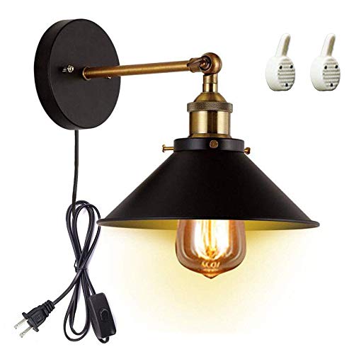 FSLiving ブラケットライト 角度調節可 穴開け不要 壁掛けフックにて固定 コンセント式 ON/OFFスイッチ付き レトロ 鳥かご形 おしゃれ E26口金
