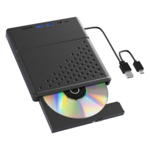 Alxum 8 in 1 CD DVDドライブ 外付け-USB3.0 A&Type-C両接続CDプレーヤー、SD/TFスロット&USBポート付き超高速データ入出力CD 24X DVD 8X 光学ドライブ 外付け対応 Laptop/Windows/Linux/Vista/Imac