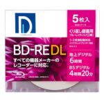 電響社 マクセルのBD-RE DLは、容量50GBで地デジ約360分録画可能。1〜2倍速対応、ワイドプリント対応のホワイトレーベル。5枚入りのパッケージです。