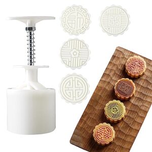 [BEAUTY PLAYER]月餅型 ムーンケーキ型 月餅モールド スタンプ*4枚入り 50g月餅金型プレス 手動圧力月餅 クッキー型 ベーキング型金型 お菓子 和菓子 中秋月餅 ABS樹脂製 本体+模様花片 月餅 家庭用手動DIYツール (万福晋安)