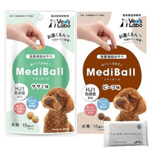 メディボール 犬 薬 飲ませる おやつ 投薬 投薬補助 人気2種セット (ささみ, ビーフ) 各15個入 + SLS限定ペット用オーガニックコットン