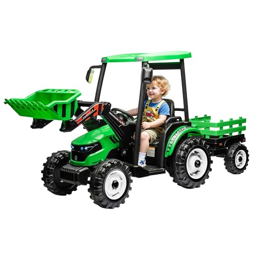 SPECRAFT 24V 子供用トラクター トレーラー&フロントローダー付き 3-in-1 電気工事車両 リモコン付き 4ギアボックス デュアルモーター メタルフレーム 大きな子供向けの乗り物おもちゃ (グリーン)の製品情報