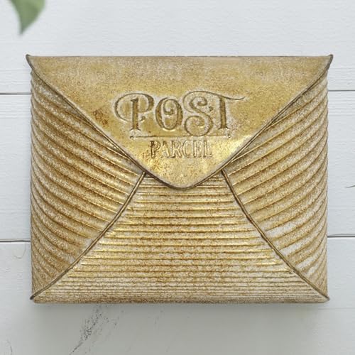 壁掛けのヴィンテージスタイルの郵便受け。外用として設計されたゴールドカラーのメールボックスは、耐候性に優れ、ポストにお洒落なアクセントを加えます。個性的なデザインで、郵便物を安心に保管。