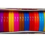 エレガンスプラスチック製のマルチカラーバングル。サイズは2.8×10mmで、小さなお子様や女の子、女性に最適。アクリル素材で軽く、カラフルなデザインが魅力です。