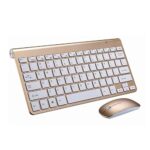 静音・薄型のゴールドワイヤレスマウス&キーボードセット。USB充電式で防水、2.4GHz接続。Mac/Windows/iOS/PC/iPad/スマホ対応。コンパクトなテンキーレスデザインで、テレワークやゲーミングに最適。