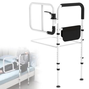 bumxca 手すり 室内 立ち上がり補助器具 【6段階高さ調節】 トイレ/ベッド/玄関/階段/廊下 介護手すり 【転倒防止】 つかまり立ち 耐荷重150kg 高強度カーボンスチール材質 起き上がり stand up 高齢者向け 工具不要 簡単設置 軽量 摩擦係数0.65 EVA滑り止めコーティング付き フロント収納ポケット付き 日本語取扱説明書 ホワイト (ホワイト 滑り止めゴム)