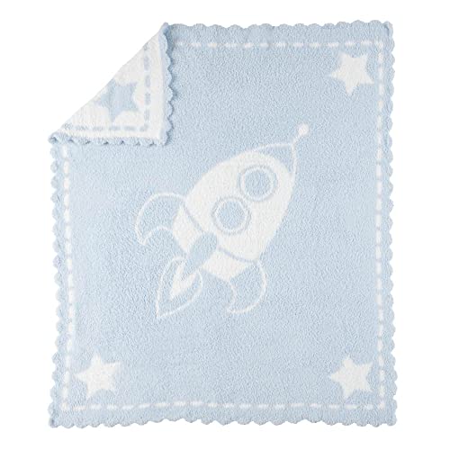 Malibu by enneのベビーブランケットは、マイクロファイバー素材で柔らかく、赤ちゃんに優しいデザインです。ひざ掛けやおくるみに最適で、スペースシャトルデザインのブルーカラーが特徴です。