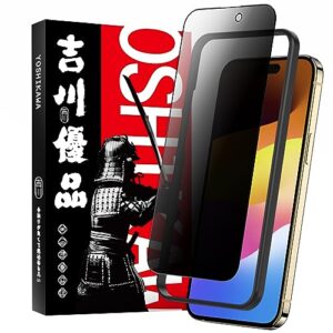 吉川優品 iPhone 15 Pro max用 ガラスフィルム 覗き見防止 全面保護 プライバシー保護 旭硝子製 穴無し 強化ガラス ケースに干渉せず ガイド枠付き 貼り付け簡単 滑らか 高硬度9H 気泡無し 貼り付け簡単 6.7インチ 液晶保護フィルム