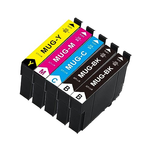 エプソン用MUG MUG-4CL(2BK/C/M/Y) 互換インクカートリッジ5本セット。大容量、ICチップ搭載で残量表示対応。EW-052A、EW-452Aインクに互換。個別包装で使いやすい。