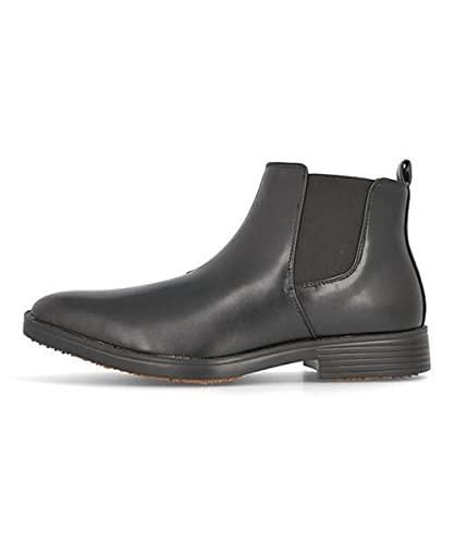 ノースデイトのメンズビジネスシューズ。サイドゴアブーツタイプで金属ピンスパイク付き。抗菌・消臭・耐水機能あり。4E幅広設計でカジュアルからフォーマルまで対応。サイズ27.0cm、色はブラック。
