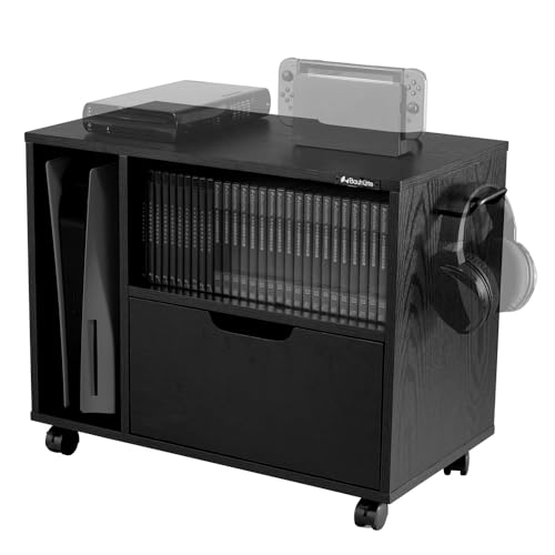 Bauhutte ゲーム機 収納ラック BHS-640G-BKは、PS5やSwitchに対応。ケーブルボックス付きで、ゲームソフトやコントローラーもまとめて収納できます。リビングに最適なブラックデザイン。