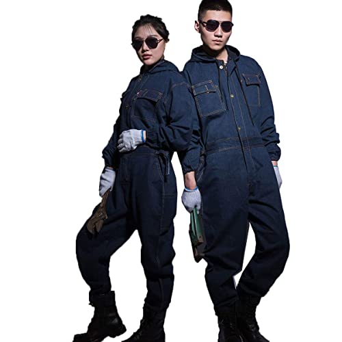 BoHuiTaiのツナギ作業服は男女兼用で、デニム素材のオールインワンです。長袖フード付きで通気性があり、吸汗速乾機能も備えています。おしゃれなデザインで、オールシーズン使用可能。カラーはダークブルー、サイズは2XL/180です。