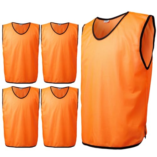 無地ビブスゼッケン5枚セット、子供用・大人用(蛍光オレンジ)。ユース・中学生向け。サッカー、バスケ、フットサル、運動会に最適なイベント用。チーム分けに便利。