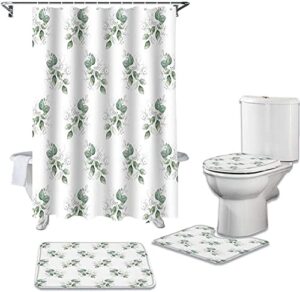 スノーマンとサンタクロースデザインのシャワーカーテンセット。バスルーム用の滑り止めマット、カーペット、防水便座クッション、バスマットが含まれ、クリスマスの雰囲気を演出します。