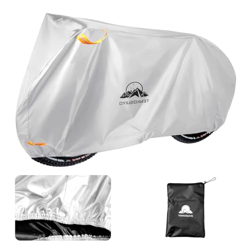 TENKOSUIYO 自転車カバーは超厚手420D生地で、防水・破れにくい設計。紫外線カット、風飛び防止、二重縫製。収納袋付きで、28インチまで対応。耐水圧8000mmで全天候対応。