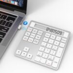 Bluetoothナンバーパッドは、34キーの電卓機能を備え、MacBook Pro/AirやiMac、デスクトップディスプレイと連携。USBポート接続・無線両対応で、オフィスや財務会計に便利なデータエントリーツールです。