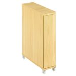 ぼん家具のトイレラックは、幅16×奥行50×高さ68.2cmのスリム設計。12個のペーパー収納可能で、キャスター付き。扉付きで掃除用具も収納でき、ナチュラルなデザインが魅力。