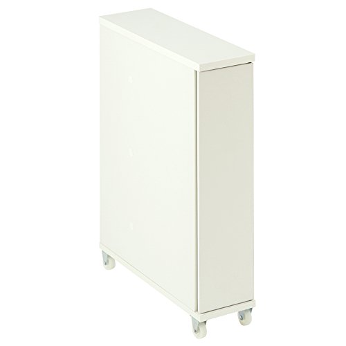 ぼん家具のトイレラックは、幅16×奥行50×高さ68.2cmのスリム設計。キャスター付きで移動も簡単。12個のペーパー収納が可能で、掃除用具入れとしても活用できます。扉付きでホワイトのデザインが清潔感を演出します。