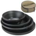 キャンピングムーンのテーブルウェアは、キャンプに最適なステンレス製プレートセットです。帆布ケース付きで持ち運びも便利。耐久性が高く、アウトドアシーンで活躍する黒色デザインが魅力です。