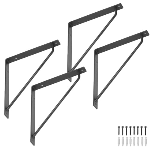 ビクトモのブラケット棚受け金具4個セットAタイプ。サイズは30cm×25cmで、業務用やDIYに最適。黒いアイアン製でL型デザイン、シェルフやラックの取り付けに便利です。