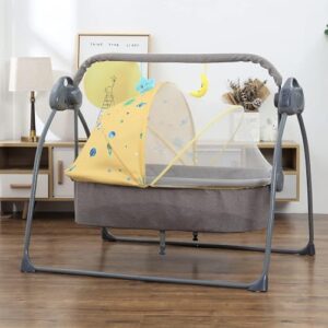 Blyzo 電動ベビーベッド Bluetoothスイング 0〜18か月 新生児用 音楽コントロール 蚊帳付き ロッキング機能 ベビークレードル (ブルー) (イエロー)