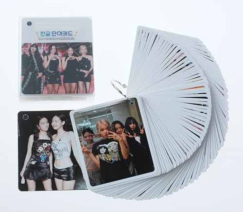 ブラックピンクのジェニー、リサ、ロゼ、ジスのグッズ。韓国語単語63枚とケース付。ファン必見のアイテムで、語学学習やコレクションにも最適。